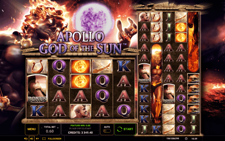Slot Apollo God of the Sun je zasnovan na grčkoj legendi, prema kojoj je Apolon vozio kočije, koje su vukla četiri konja, da bi svakodnevno preko neba vukao sunce od istoka prema zapadu.