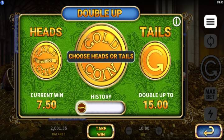 Kolone slota Arthurs Gold su smeštene na brdu zlatnika. Sve vreme ćete slušati muziku koja će dočarati period vladavine kralja Artura.