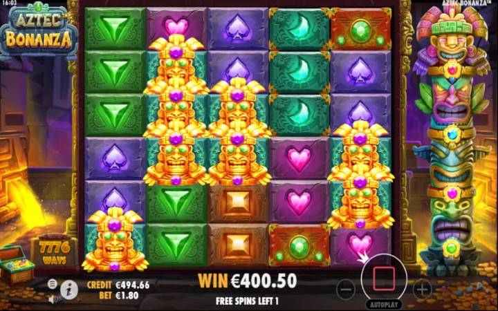 Sjajna stvar je što slot Aztec Bonanza ima i bonus rundu besplatnih spinova, koji se aktiviraju kada odblokirate sve kolone i otključate svih 7. 776 dobitnih kombinacija. Ako otključate sva četiri ugla u jednom skupu prevrtanja, pokrenućete bonus igru besplatnih spinova.
