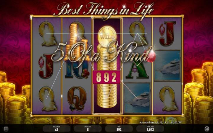 Best Things in Life je zanimljiv video slot koji ima pet kolona smeštenih u tri reda i 30 fiksnih isplatnih linija. Da biste ostvarili bilo kakav dobitak potrebno je spojiti tri ili više podudarajućih simbola na isplatnoj liniji.