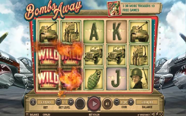 Ako želite da zaigrate video slot ratne tematike pravi izbor za vas može biti baš naredni slot koji ćemo vam predstaviti. Tematika II svetskog rata nije mnogo obrađivana u obliku kazino igara a slot koji ćemo vam sada opisati osim što obrađuje ovu tematiku donosi i sjajnu grafiku. Proizvođač kazino igara Habanero sa ponosom predstavlja Bombs Away, igru koja nikoga neće ostaviti ravnodušnim. Sjajni džokeri će vas raspametiti, a granatama će vam doleteti i dodatni džoker simboli. Osim toga čekaju vas standardni besplatni spinovi. Pročitajte naredni deo teksta i upoznajte se sa recenzijom igre Bombs Away.