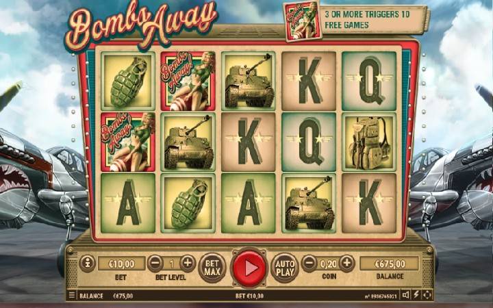 Bombs away i 50 fiksnih isplatnih linija su ginajle. Savreni slot sa 5 linija smestenih u 3 kolone savrseno se uklapaju u samu tematiku igre. Prelep je slo, zaista donosi velika iznenadjenja i sjajne bonuse. Sve preporuke!