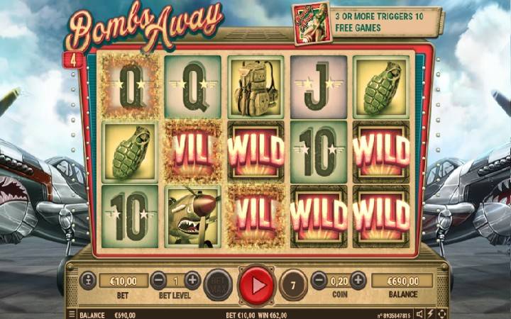 Bombs Away je ratni video slot koji ima pet kolona smeštenih u tri reda i 50 fiksnih isplatnih linija. Da biste ostvarili bilo kakav dobitak potrebno je spojiti tri ili više podudarajućih simbola na isplatnoj liniji. Sve dobitne kombinacije se računaju isključivo sleva odesno počevši od prve kolone sa leve strane.