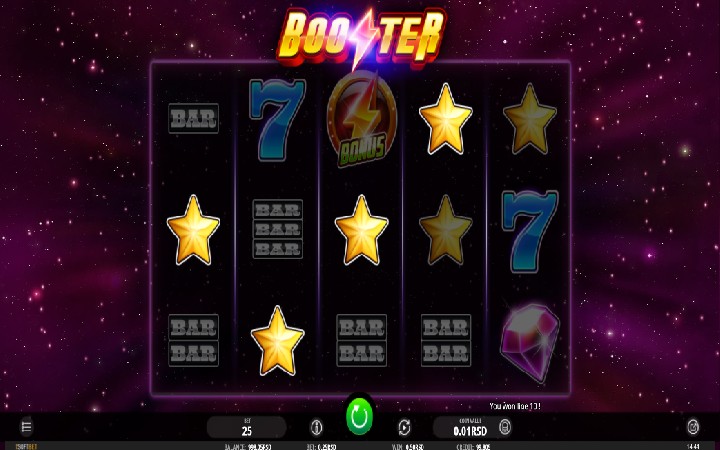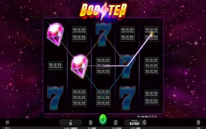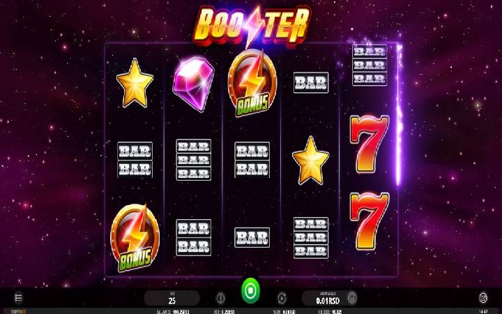 Postavka slota Booster je na pet kolona u tri reda i 25 isplatnih linija. Da biste ostvarili dobitak u ovoj online kazino igri potrebno je da imate tri ili više podudarajućih simbola na isplatnoj liniji krenuvši sa leve strane na desnu.