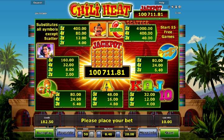 Video slot Chili Heat je smešten u Meksiko, gde je domaćin simpatični Pedro kome ne nedostaje šarma, a obožava salsu. Sa njim je fiesta svaki dan, a još i deli bonuse!
