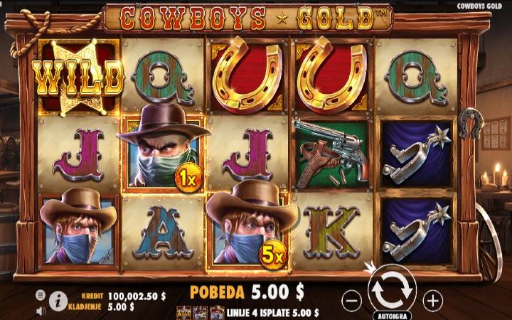 Video slot Cowboys Gold dolazi od proizvođača kazino igara Pragmatic Play sa uzbudljivom kaubojskom temom. U ovom slotu, kada otpadnički simboli padnu na kolonu pet, sve novčane vrednosti se zbrajaju i dolazi do dobitka. U bonus rundi besplatnih spinova, ponovni pokretači vam daju više besplatnih spinova, ali i povećavaju množitelj do x5 kada pokrenete Money Collect funkciju, o čemu ćemo detaljnije tokom ove recenzije kazino igre.