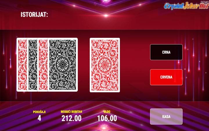 Svaki dobitak možete duplirati uz pomoć bonusa kockanja. Sve što treba da uradite da biste duplirali vaš dobitak jeste da pogodite koje boje je naredna izvučena karta iz špila, crne ili crvene.
