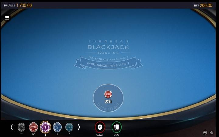 Rundu u European Blackjack počinjete stavljanjem svojih opklada. Ovo se radi odabirom jednog od četiri novčića na levoj strani stola.