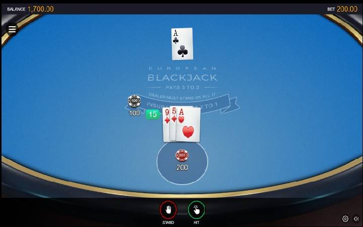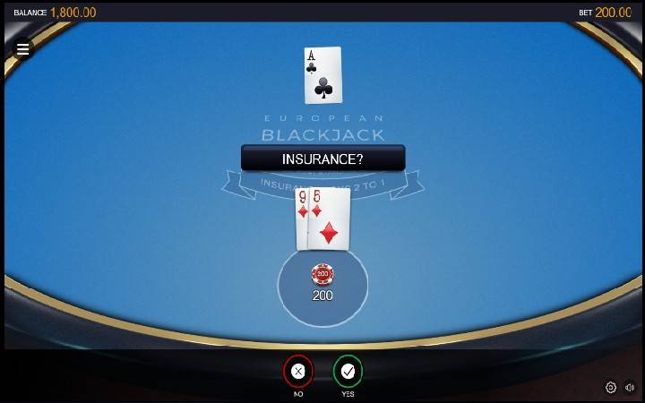 Osiguranje u igri European Blackjack je i dalje dostupno. Možete ga uzeti ako je dilerova prva ruka as. Izdanje nema nikakve sporedne opklade koje možete iskoristiti.