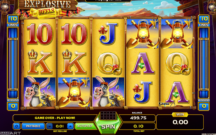 Smešten u rudarskom oknu sa pet kolona u tri reda, ne čudi otkud eksplozija u nazivu slota Explosive Reels. Kroz rudnik zlata vas vode simpatični sedi čikica i njegov šašavi pomoćnik, magarac! U ovom rudniku vas očekuje puno akcije i uzbuđenja koju će vam pružiti bonus igra, o kojoj će biti reči nešto kasnije.