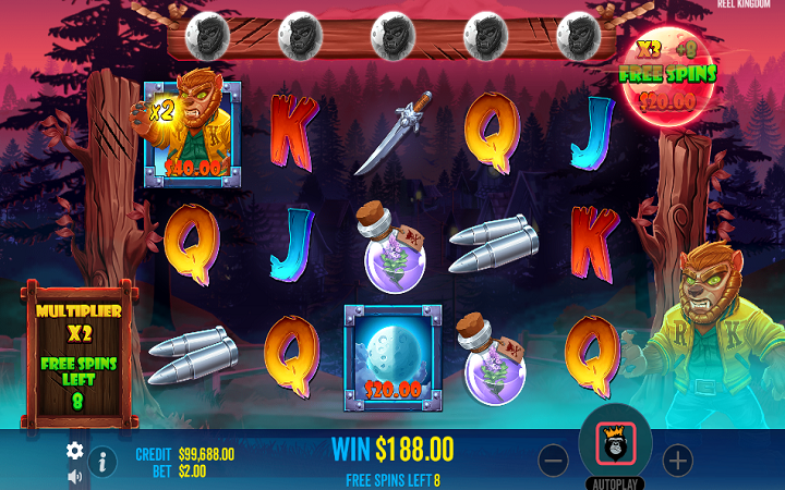 Tada će se aktivirati i množilac x2 koji se primenjuje na sve dobitke sa simbolom meseca. Ponovnom reaktivacijom osvajate novih osam besplatnih spinova, a množilac raste na x3.