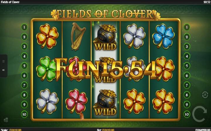 Fields of Clover je video slot inspirisan irskom kulturom i tradicijom, koji ima pet kolona u tri reda i 10 isplatnih linija. Isplatne linije su fiksne i njihov broj ne možete menjati. Da biste ostvarili bilo kakav dobitak potrebno je da spojite tri ili više podudarajućih simbola na isplatnoj liniji. Sve dobitne kombinacije računaju se u oba smera, bilo da spojite simbole sleva udesno ili zdesna ulevo, obezbedili ste neki dobitak.
