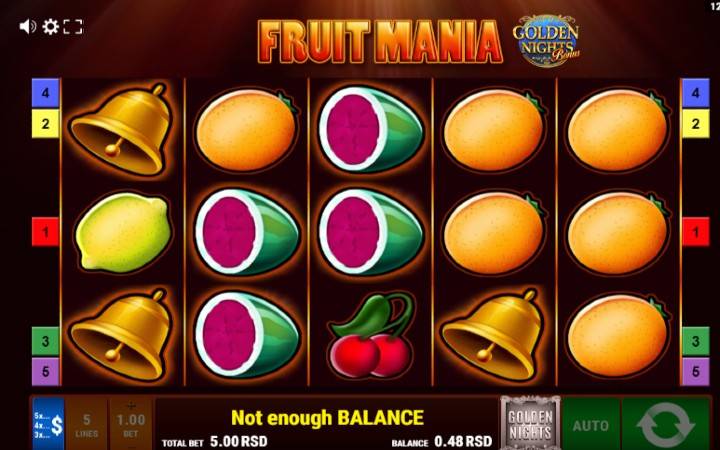Tradicionalne mašine za voće su i dalje popularne kod velikog broja igrača širom sveta, a Fruit Mania, zbog dodatka Golden Nights bonusa imaju dodatnu prednost.