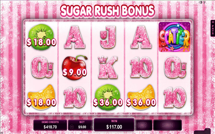 U okviru video slota Fruit vs Candy postoji i jedna specijalna bonus igra, pod nazivom Sugar Rush Bonus. Ona se pojavljuje u obe osnovne igre i pojavljuje se nasumično, posle nedobitnog spina. Tokom ovog bonusa, svi simboli veće isplatne vrednosti, nagrađuje vas novčanom nagradom. Dok traje ovaj sjajan bonus, dovoljan je samo jedan scatter simbol da pokrenete bonus besplatne spinove.