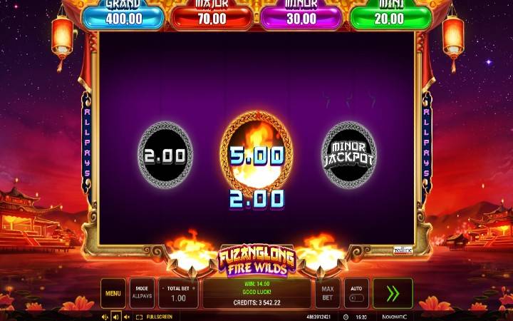 Kada se simbol zmaja proširi na čitavu kolonu i zauzme sve tri pozicije na koloni, tada aktivirate bonus igru slota Fuzanglong Fire Wilds. Pred vama će se pojaviti tri simbola zmaja.