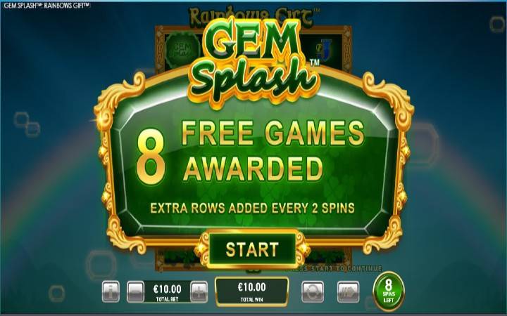 Slot Gem Splash Rainbows Gift ima i bonus rundu besplatnih spinova koja se aktivira dobijanjem tri ili više scatter simbola istovremeno na kolonama slota.