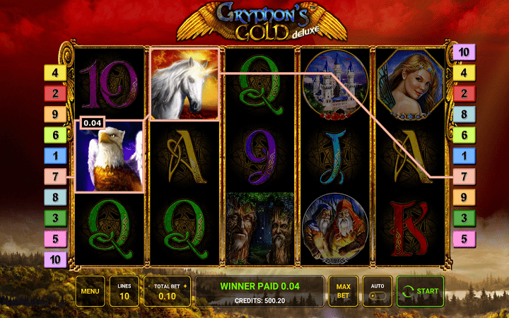 Iza online kazino slota Gryphons Gold Deluxe nalazi se veoma zanimljiva priča o Grifonima koji terorišu bajkovito kraljevstvo Vinalot, kradu gnome, jednoroge i devojke, i odvode ih u brdo. Vaš zadatak je da se popnete na planinu i sve ih spasete, a za taj poduhvat ćete biti lepo nagrađeni.