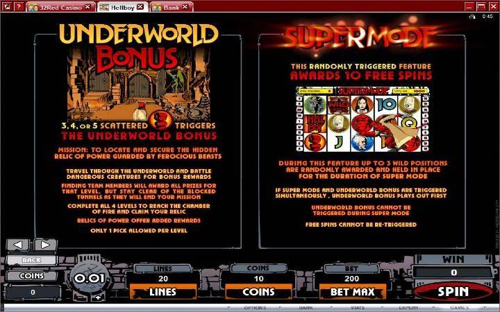 Postoji još jedna sjajna bonus karakteristika u video slotu Hellboy, a to je Super režim bonus. Ovo vam je poznato jer je u pitanju runda bonus besplatnih spinova. Zanima vas kako se aktivira ova bonus funkcija? Super režim se aktivira nasumično i igrači dobijaju 10 bonus besplatnih spinova. Tokom besplatnih spinova, tri džoker simbola se proizvoljno aktiviraju i ostaju u mestu, stvarajući na taj način velike dobitne kombinacije.