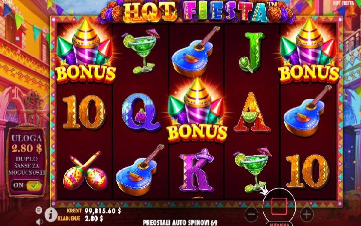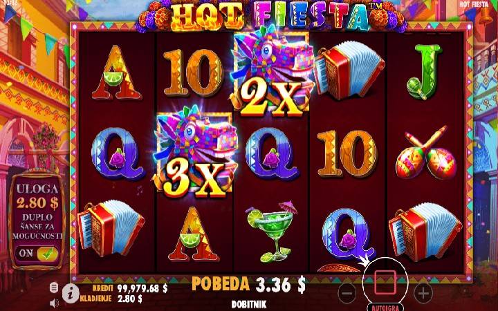Na trenutak vas vodimo na vrele meksičke ulice prepune ljudi gde se izgleda odvija jedan od tradicionalnih latino-američkih karnevala. Na ulicama ćete videti cirkusante, ulične svirače sa gitarama i harmonikama, prelepe devojke sa cvećem u kosi i još mnogo toga. Proizvođač igara Pragmatic Play predstavlja igru Hot Fiesta koji će vam približiti zabavu na meksički način. Veliki karnevali su ukorenjeni u latino-američke običaje pa stoga i ne čudi što su pragmatičari inspiraciju pronašli baš u tome. Videćete džokere sa množiocima kao i besplatne spinove koji vas mogu zabaviti. Pre nego što isprobate ovu igru, pročitajte pregled slota Hot Fiesta koji sledi u nastavku teksta.
