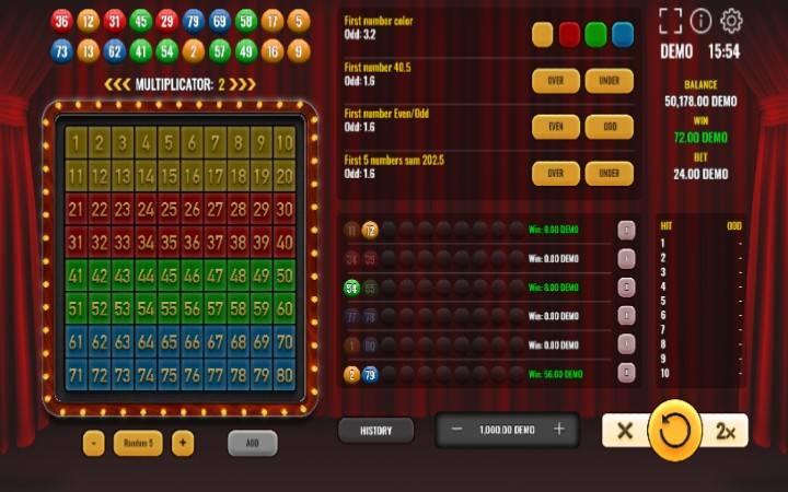 Osim standardnih igara, u kojima pogađate koji brojevi će biti izvučeni, čeka vas i nekoliko sporednih opklada. 80 brojeva je predstavljeno sa četiri boje, a vi možete pogađati boju prvog broja. Gađajte da li će prvi broj biti veći ili manji od 40.5. Između ostalog, možete se kladiti da li će prvi broj biti paran ili neparan, ili da li će zbir prvih pet brojeva biti veći ili manji od 202.5. Takođe, možete gađati i boju prvog izvučenog broja. Ovih 80 brojeva podeljeno je u četiri boje: prvih dvadeset brojeva prikazano je žutom bojom, brojevi od 31 do 40 prikazani su crvenom, od 41 do 60 zelenom, dok su brojevi od 61 do 80 prikazani plavom bojom.