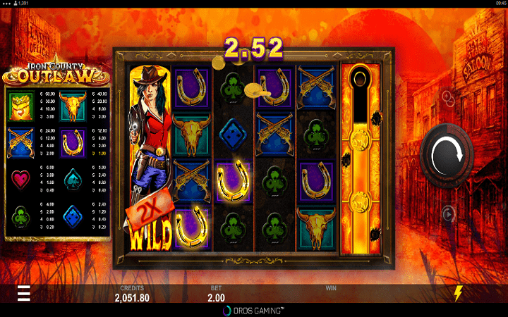 Iron County Outlaw je video slot koji ima pet kolona smeštenih u četiri reda i ima 30 fiksnih isplatnih linija. Postoji i specijalna šesta kolona koju možete otključati ako sakupite 90 zlatnika.