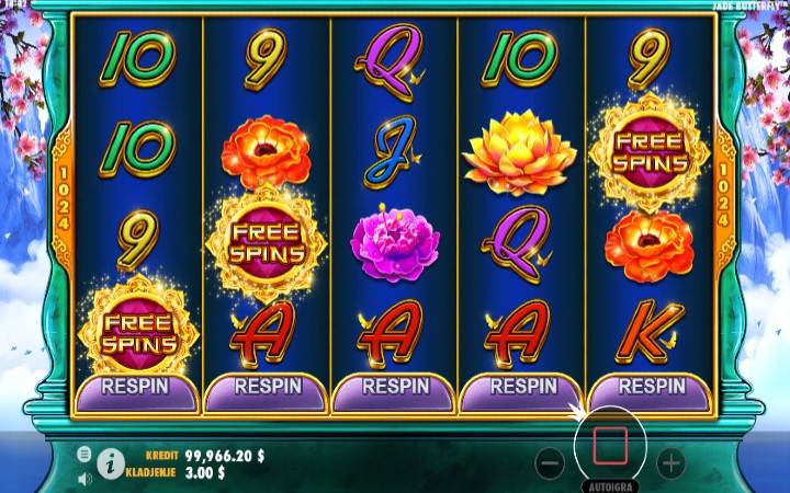 Slot Jade Butterfly nudi posebnu pogodnost u vidu bonusa Respin kojeg možete sami pokrenuti u bilo kom trenutku.