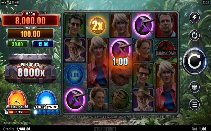 Jurassic Park Gold je smešten u divlje predele parka iz doba Jure. Zvučni efekti iz popularnog filma prisutni su sve vreme dok su efekti prilikom ostvarivanja dobitaka fascinantni.