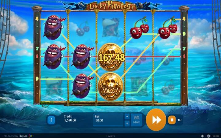 Volite li dobru zabavu? Na pravom ste mestu, jer vas upravo to čeka u narednoj online kazino igri. Slatke voćkice su se prerušile u neustrašive pirate i krenule su u lov na skriveno blago. Ako želite da im pomognete, sve što treba da uradite jeste da zaigrate zanimljiv video slot Lucky Pirates, koji nam sa ponosom predstavlja proizvođač igara Playson. Čekaju vas slatki džokeri, neodoljivi scatter simboli u obliku morske zvezde, ali i još mnogo toga. Potencijalna maksimalna isplata je 5.000 puta veća od vrednosti vašeg uloga. Isprobajte novi video slot Lucky Pirates, ali pre toga pročitajte detaljan pregled ove igre, koji vas čeka u nastavku teksta.