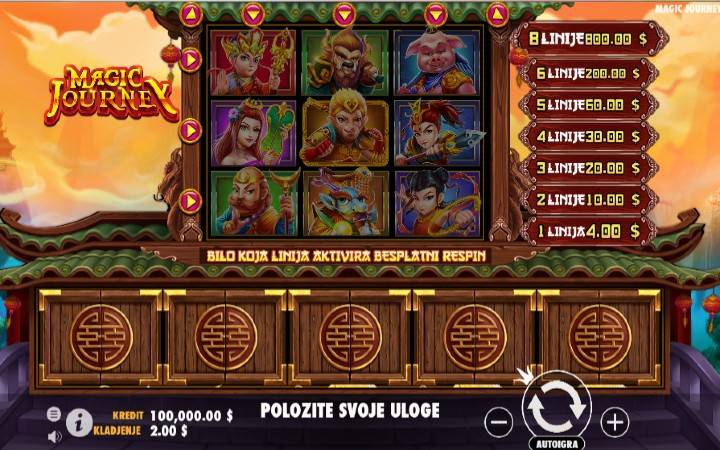 Krenite na magično putovanje sa klasičnim slotom Magic Journey koji dolazi od proizvođača kazino igara Pragmatic Play. Programeri su inspiraciju za ovu slot igru pronašli u neiscrpnoj kineskoj kulturi.