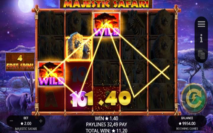 Majestic Safari je uzbudljiv video slot koji ima pet kolona smeštenih u četiri reda i 50 fiksnih isplatnih linija. Da biste ostvarili bilo kakav dobitak potrebno je spojiti tri ili više podudarajućih simbola na isplatnoj liniji. Sve dobitne kombinacije se računaju sleva udesno počevši od prve kolone sa leve strane.