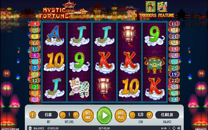 Online kazino slot Mystic Fortune je po dizajnu bajkovit slot, postavljen iznad vode, koju obasjavaju tradicionalni kineski lampioni dok se samo povremeno čuju zvuci flaute koja donosi orijentalni duh.