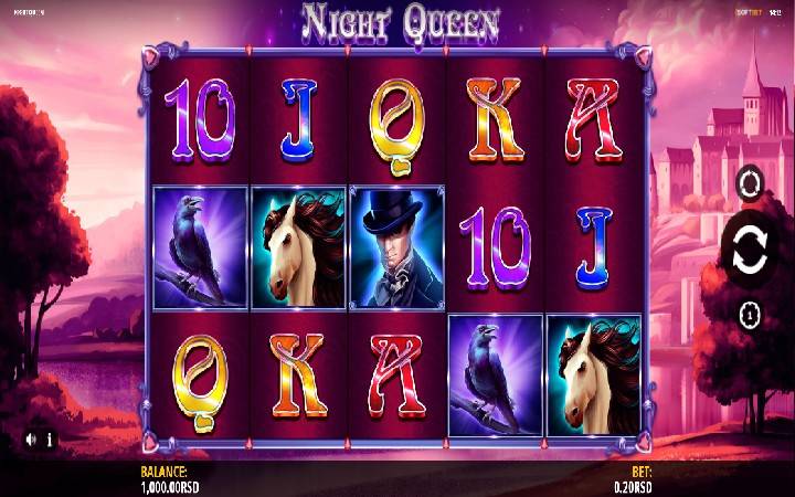 Video slot Night Queen prikazuje noćnu scenu sa đavolski mračnom kraljicom noći. Igra spada u žanr horora sa nagoveštajem vampira i gotičke privlačnosti. To je primamljiv žanr u online slotovima dajući igračima odmor od svetlijih formata.