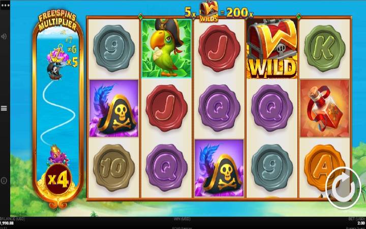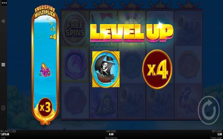 Svaki put kada se simbol broda pojavi na kolonama, on će se pretvoriti u scatter simbol. Osim toga, sa leve strane, u dodatnoj koloni, videćete napredak, i kad god se brod pojavi na kolonama, brodić se pomera i na posebnoj levoj koloni. Kada dođe do kraja, množilac se povećava za 1, a novi brod kreće na put. Postoji 10 različitih brodova, pa možete osvojiti množilac do vrednosti x10.