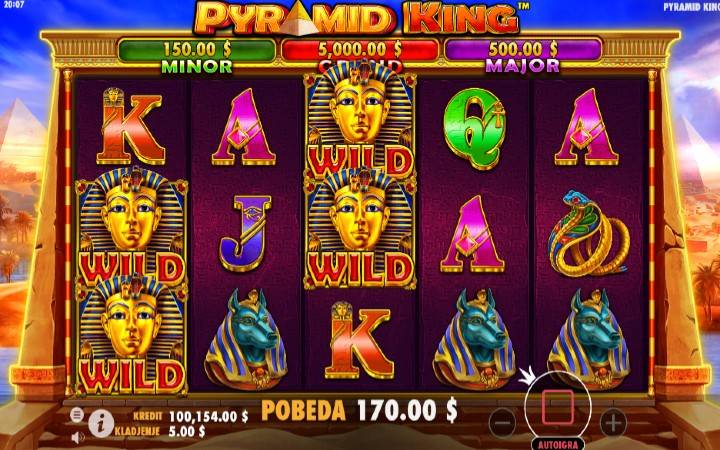 Slotovi sa temom drevnog Egipta su vrlo popularni kod svih vrsta online kazino igrača, a novi slot Pyramid King je igra koja će vas naprosto oduševiti. Prepuna je džoker i bonus simbola, a imaćete priliku da zaradite kroz bonus besplatne spinove, ali i da osvojite jedan od tri džekpota.