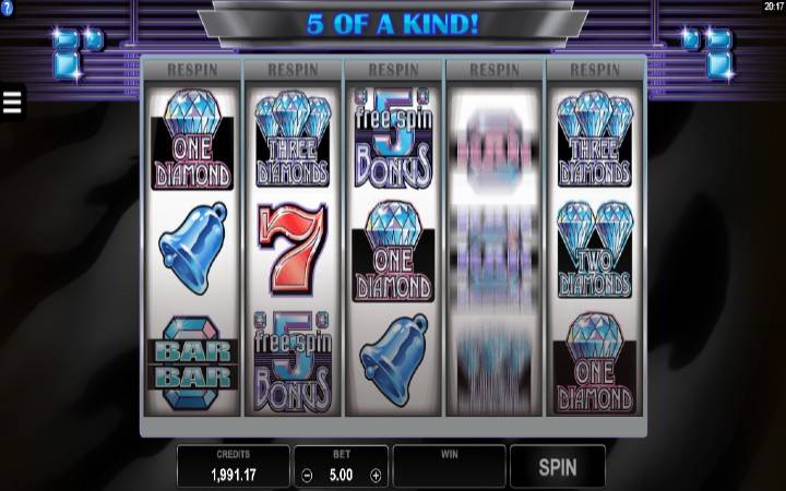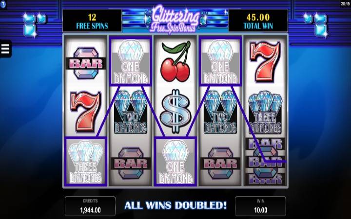 Klasicna kazino igra,gde dominiraju dijamanti i simboli kazino bara,tresnje,staklena zvona!Treba sloziti tri ista simbola na jednoj od 25 isplatnih linija i krece akcija.Dobijaju se spinovi,postoje i espinovi,a dzoker sa najvecom vrednoscu je trostruki dijamant!