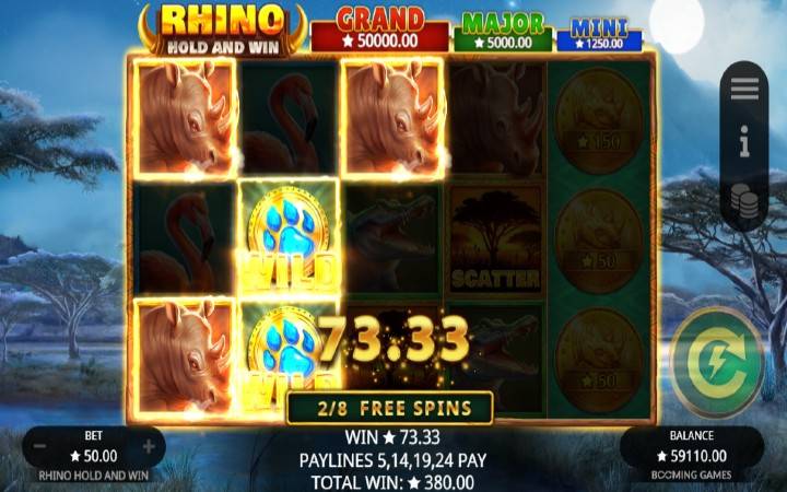 Rhino Hold and Win je novi video slot koji nam predstavlja proizvođač igara Booming Games. Čekaju vas besplatni spinovi sa visokoisplatnim simbolima, složeni džoker simboli ali i Hold and Win bonus koji vam može doneti 1.000 puta više.