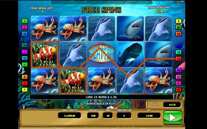 Ova online kazino igra će vam pružiti preko potreban morski krajolik, i uroniti vas u svet gde možete tražiti blago sa mirnim stanovnicima mora. Postavka igre je na pet kolona, u tri reda i 20 isplatnih linija. Pozadinu čini koralni greben pun raznovrsnog morskog života.