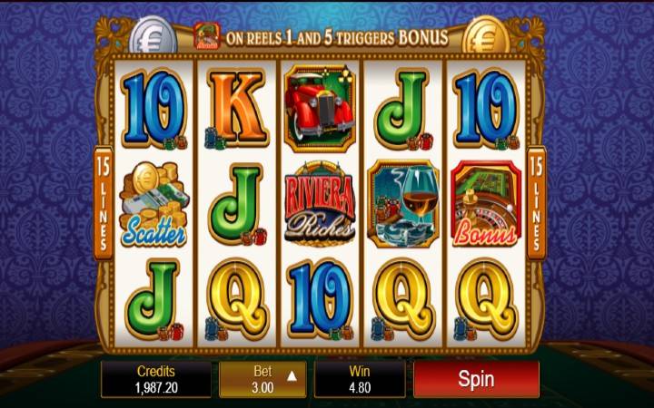U slotu Riviera Riches postoji pet kolona u tri reda i 15 linija za isplatu, tako da su nagrade sigurno velike, ako imate sreće da poređate simbole u dobitni niz. Ne morate biti milioner da biste igrali ovu igru, jer klađenje počinje sa 0.01 po spinu. Ali ako ste malo hrabriji, sa dubljim novčanikom možete igrati na maksimalnom ulogu od 150 kredita.