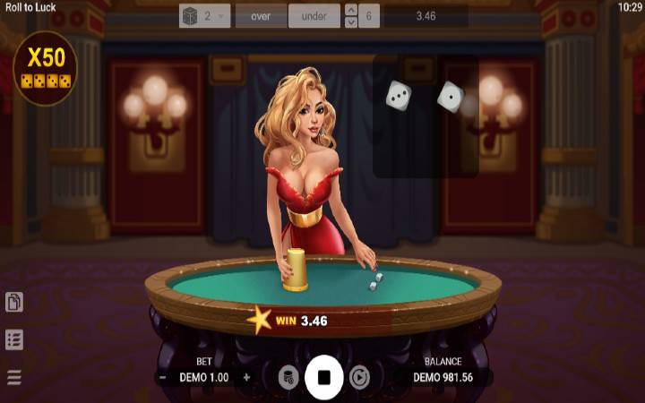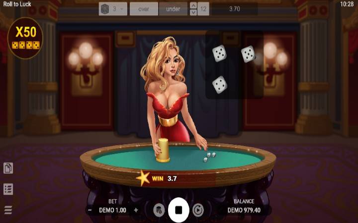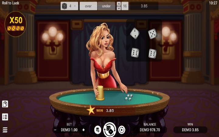 Roll To Luck je igra koju možemo svrstati u kategoriju igara za stolom. Iako u nekim od igara za stolom nećete videti krupijea, odnosno dilera ovde to nije slučaj. Prelepa devojka Nicole je diler ove igre i ona će bacati kockice umesto vas. Ona je obučena u crvenu haljinu i nosi zlatan pojas oko nje. Uz malo sreće doneće vam neke neverovatne dobitke.