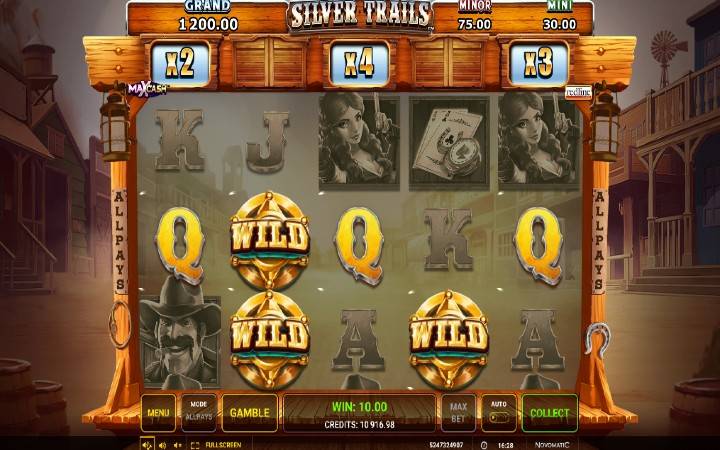 Kolone slota Silver Trails su postevljene u jedan od gradića na Divljem zapadu, a sa obe strane kolona videćete dobro poznate salone. Zvučna podloga doprinosi atmosferi ovog slota, dok je grafika igre odlična.
