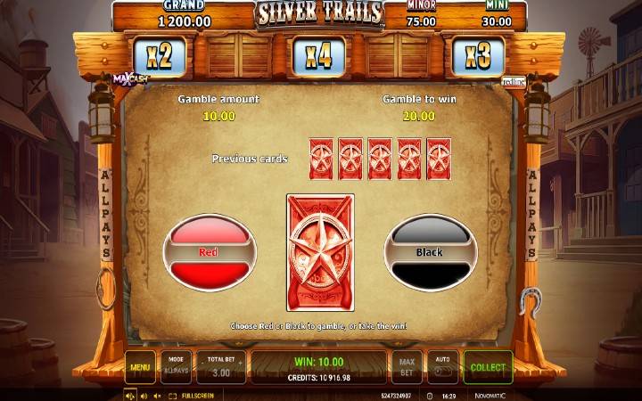 Silver Trails ima i sjajan bonus kockanja. Sve što treba da uradite da biste duplirali dobitak jeste da pogodite koje boje će biti naredna izvučena karta iz špila, crne ili crvene. Možete kockati nekoliko puta zaredom.
