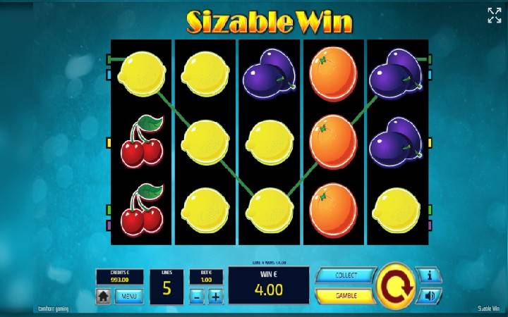 Pozadina ove kazino igre voćne tematike je nežno plave boje pa tamnije kolone odlično dolaze do izražaja. Voćkice su lepo dizajnirane i uočljive na kolonama slota. Postavka slota Sizable Win je na pet kolona u tri reda i pet isplatnih linija.