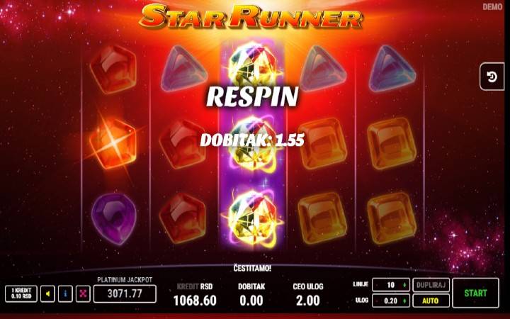 Igra Star Runner ima i demo verziju, pa možete da je isprobate i pre ulaganja stvarnog novca, na vašem odabranom online kazinu. Takođe, dostupna je za igru na svim uređajima, kako na desktopu, tako i na tabletu, i mobilnom telefonu.