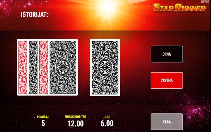 Sjajna stvar je da, slot Star Runner poseduje i mini bonus igru kockanja, koja se može aktivirati posle bilo koje dobitne kombinacije.
