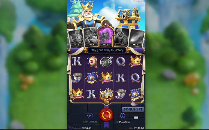 Nadamo se da želite da budete deo epske bitke, koju vodi neustrašivi kralj, jer upravo vas to očekuje u sjajnom video slotu Summon and Conquer, koji dolazi od provajdera kazino igara PG Soft. U ovu online kazino igru su uključena moćna stvorenja, kao što su zmajevi i čarobnjaci, koji koriste vatrene strele u borbi. Sjajna stvar je i što video slot Summon and Conquer obiluje ekskluzivnim bonusima, koji donose fenomenalnu zaradu.