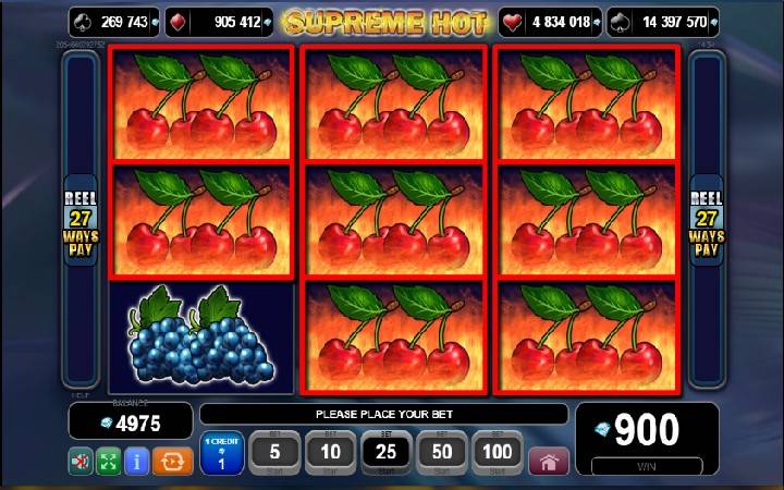 Za sve nostalgičare koji su se uželeli igara sa retro motivima provajder EGT je kreirao Supreme Hot čija postavka je na tri kolone u tri reda sa 27 načina za dobitak.