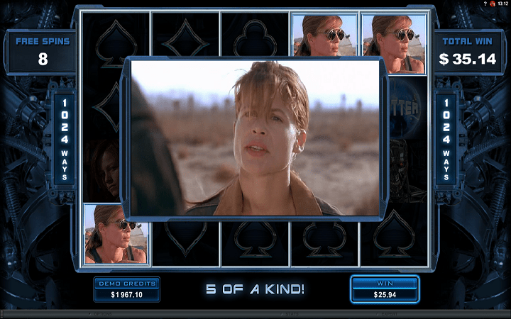 Pored ovoga, u slotu Terminator 2 bonus besplatni spinovi se mogu aktivirati kada tri ili više scatter simbola slete na kolone slota istovremeno. Tada će igrači biti nagrađeni sa 10 bonus besplatnih spinova, gde dobijate dodatne mogućnosti za veće isplate. Naime, tokom bonus runde dolazi do proširenja dobitnih kombinacija na 1.024.