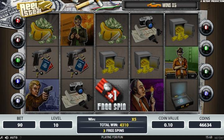 The Reel Steal je krimi slot koji ima pet kolona smeštenih u tri reda i ima devet isplatnih linija. Da biste ostvarili bilo kakav dobitak potrebno je spojiti tri ili više podudarajućih simbola na isplatnoj liniji.