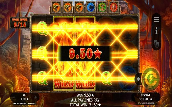 The Wild Wings of Phoenix je video slot koji ima pet kolona smeštenih u tri reda i ima 10 fiksnih isplatnih linija. Da biste ostvarili bilo kakav dobitak potrebno je spojiti tri ili više podudarajućih simbola na isplatnoj liniji.
