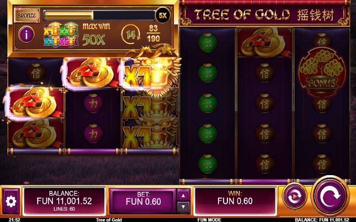 Tree of Gold je istočnjački video slot, koji ima šest kolona. Kolone su smeštene u čudnu formaciju 3-3-3-5-5-5, ali ako uspete da otvorite besplatne spinove, ova formacija se menja u 5-5-5-3-3-3. U oba smera igra ima 60 isplatnih linija, koje su fiksne i njihov broj ne možete menjati. Da biste ostvarili bilo kakav dobitak potrebno je da spojite tri ili više podudarajućih simbola na isplatnoj liniji. Sve dobitne kombinacije se računaju isključivo sleva udesno, počevši od prve kolone sa leve strane.